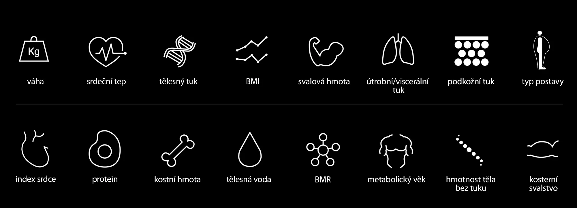 - tělesný tuk - % poměr tuku v těle,