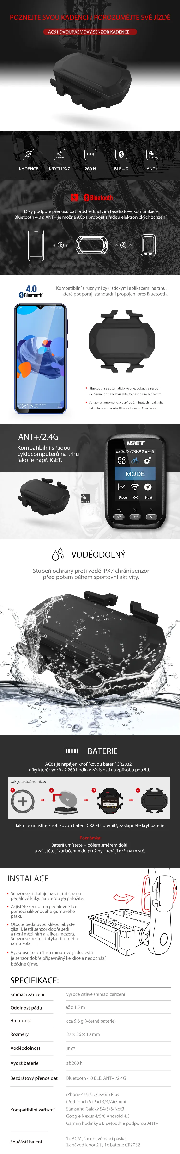 Senzor kadence iGET CYCLO AC61 propojitelný s cyklocomputery iGET.