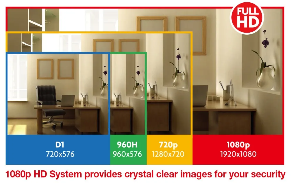 Kamery, které jsou v setu obsaženy, disponují velmi kvalitním snímačem CMOS 1/2,7" s rozlišením 1920 x 1080 bodů (FullHD 1080p), díky kterému se můžete těšit na jasný a ostrý obraz. Videozáznamy pořizují rychlostí 25 snímků za vteřinu s využitím kódování H.264. Kamery obsahují LED diody pro noční vidění s dosahem 30 m a navíc LED diody pro standartní svícení. Díky těmto parametrům je možné použití kamer ve všech prostorách i s nulovou nebo sníženou viditelností.