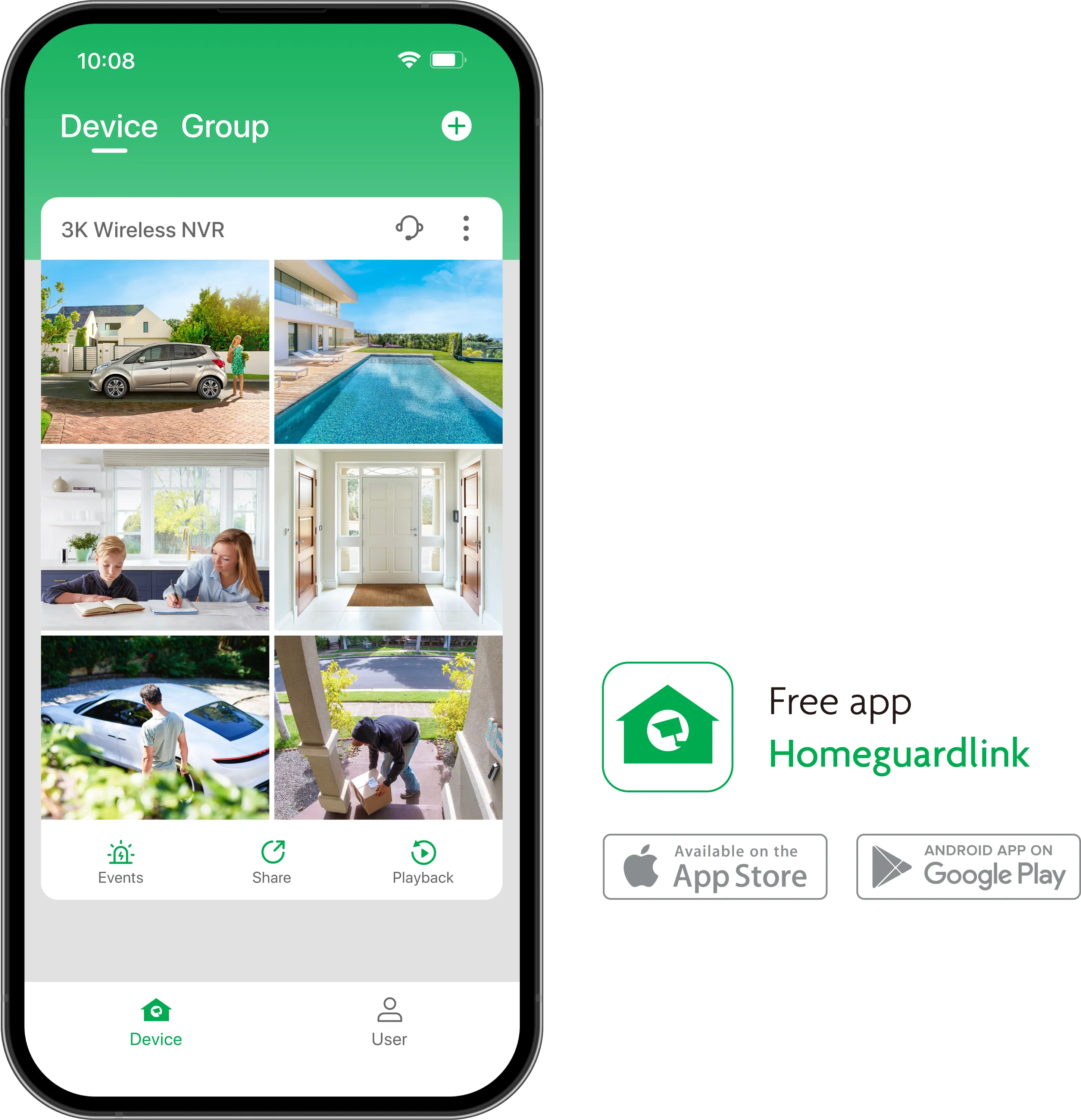 - aplikace "Homeguardlink" pro snadný přístup z vašeho smartphonu/tabletu s podporou Android a iOS