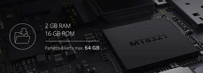 Operační systém tabletu běží na 4-jádrovém procesoru MediaTek MT8321. Procesor je taktován na frekvenci 1.3 GHz.