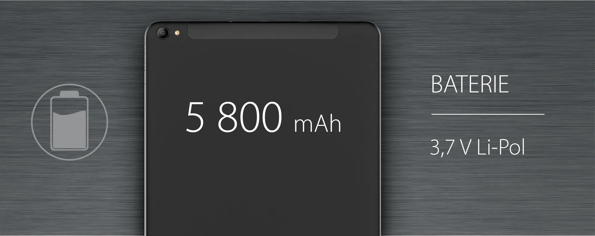 Aby tablet splňoval maximálně svoji funkci, měla by jeho baterie také něco vydržet. Tablet iGET SMART L103 je proto vybavený pořádnou baterií s kapacitou 5 800 mAh. Nemusíte se tak na cestách strachovat, že vám tablet uprostřed práce oznámí, že mu došla šťáva, a v kavárně si můžete vybrat jakýkoliv stolek, protože nebudete závislí na zásuvce.