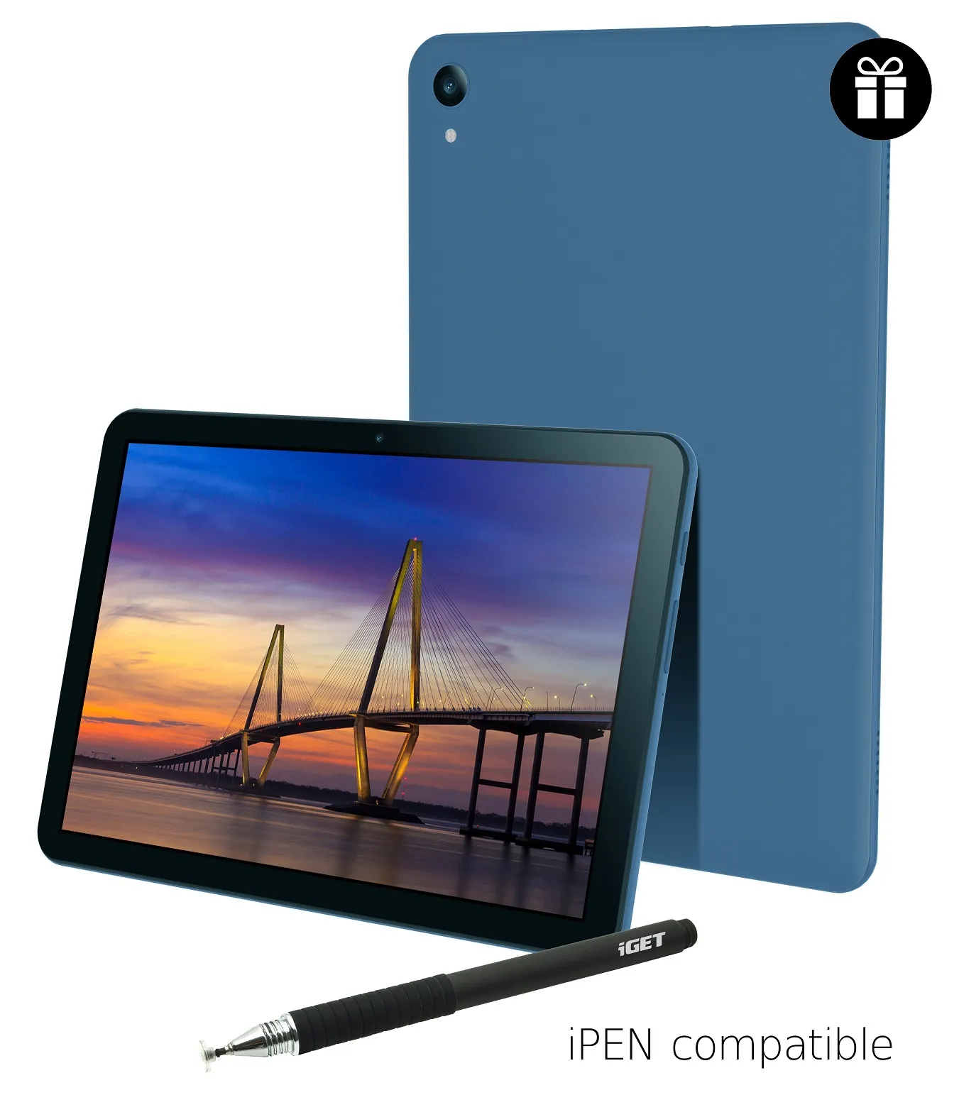 Tablet iGET SMART L205, 10.1" 1920x1200 IPS, 1,6 GHz Octa Core procesor, 4 GB RAM a 64 GB ROM, 5.0 MPix + 2.0 MPix, 5 000 mAh, WiFi, BT, GPS, 4G/LTE a Android 10. Barva černá/modrá. + dárek flipové pouzdro v balení. Kompatibilní s iGET iPEN
