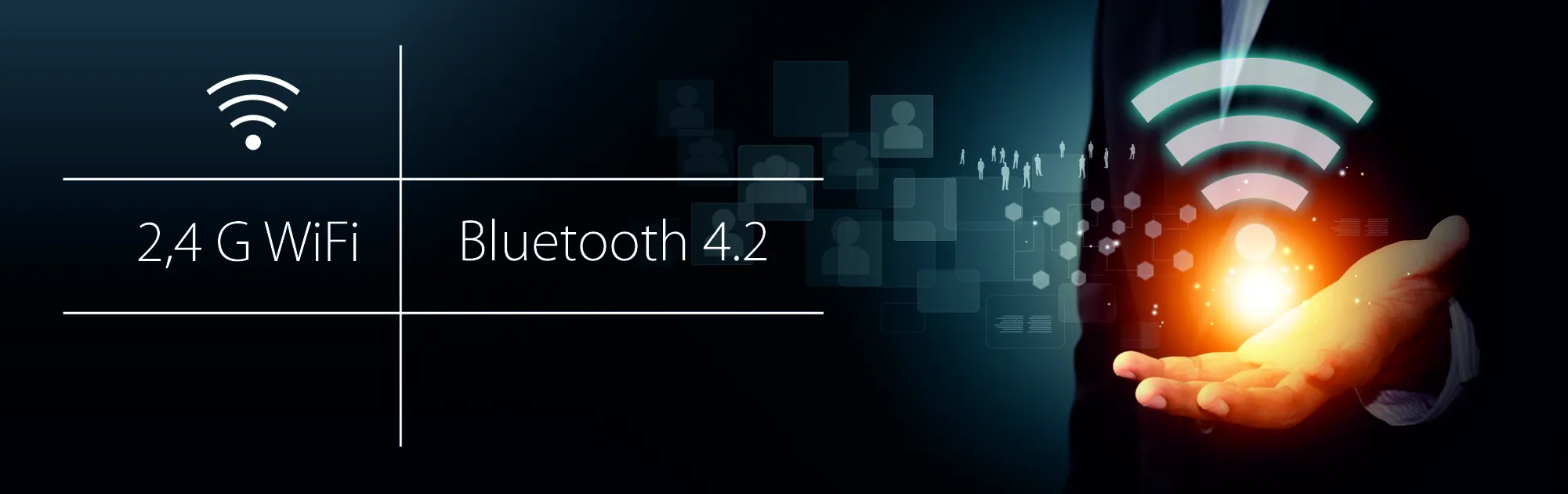 Tablet iGET SMART W202 má samozřejmě možnost připojení k Wi-Fi síti. Je vybavený také Bluetooth verze 4.2, takže jej můžete spárovat například s telefonem a sdílet mezi zařízeními fotky nebo další potřebné soubory.