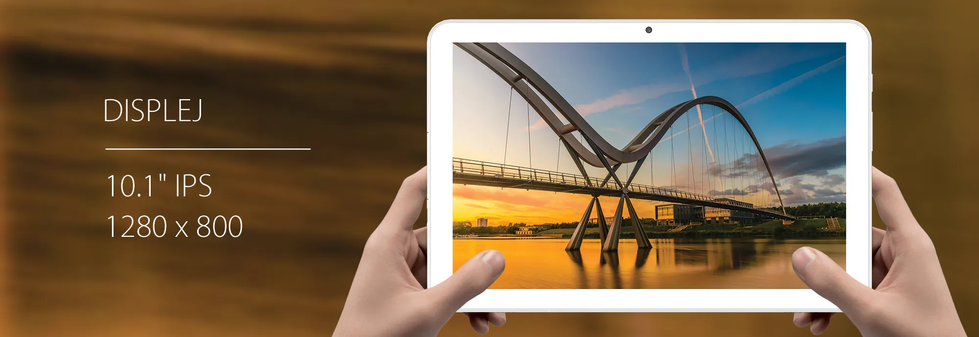 Obrazovka tabletu je tvořena IPS displejem. Jeho hlavní výhodou je minimální zkreslení barev a zejména široký pozorovací úhel. Díky němu je obsah displeje dobře čitelný ze všech stran. Displej má rozlišení 1280 x 800 px a jeho úhlopříčka o velikosti 10,1" poskytne dostatek prostoru pro pohodlné zobrazení obsahu.