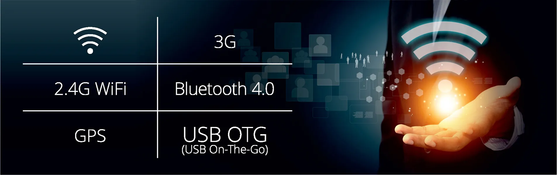 Samozřejmosti je WiFi připojení a Bluetooth 4.0, prostřednictvím kterého lze tablet spárovat s bezdrátovými reproduktory nebo sluchátky. Můžete tak zážitek ze sledování videí nebo posloucháni rádia posunout na vyšší úroveň. Díky integrované navigaci GPS se rychle zorientujete, kde právě jste. Rozhraní USB 2.0 s podporou technologie OTG umožňuje rychlý přenos dat z jiného přístroje (hostující zařízení) a připojení externích zařízení (hostitelské zařízení). Díky podpoře 3G datového připojení se s nimi spojíte, i když budete na cestách.